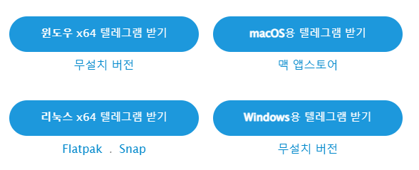 2. "윈도우 x64" 텔레그램 받기 또는 모든 플랫폼 보기에서 사용자 컴퓨터에 맞는 운영체제를 선택합니다. 보통 윈도우 사용자라면 첫 번째꺼를 다운로드 하시면 되겠습니다.