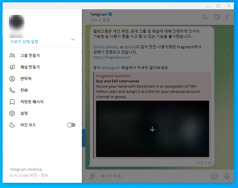 9. 설치 완료. 바로 텔레그램을 실행합니다.