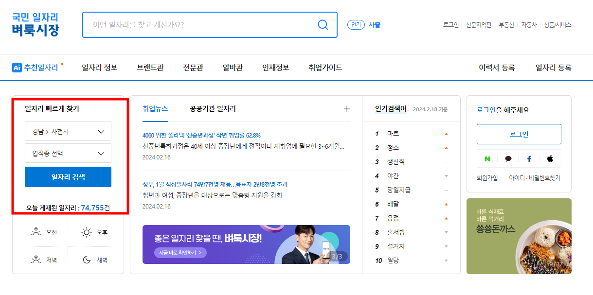 사천시 구인구직 바로가기, 일자리 정보 열람하기