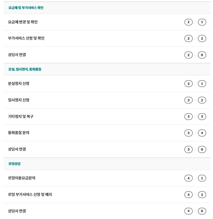 - 요금제 변경 > 부가서비스 > 일시정지 > 분실신고 - 무엇이 궁금하신가요? 자주 묻는 질문 바로가기