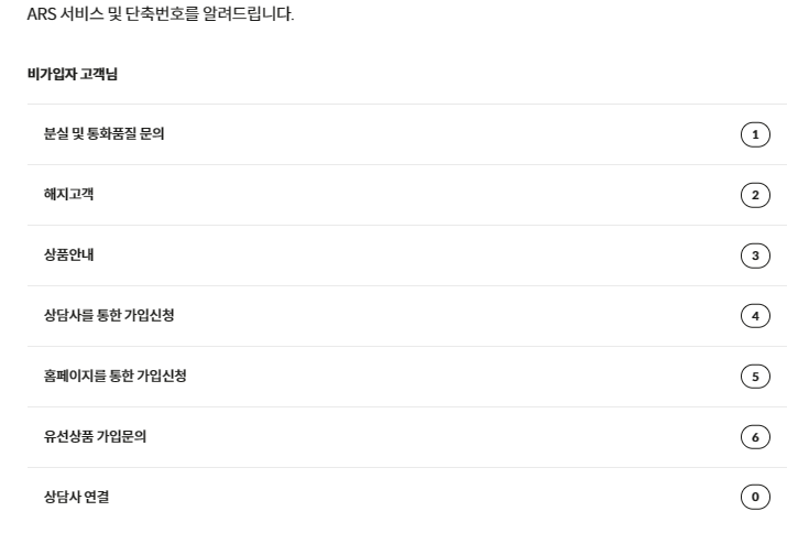 - 비가입자 고객님의 ARS 단축번호