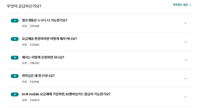 KT M모바일 고객센터 주요 서비스
