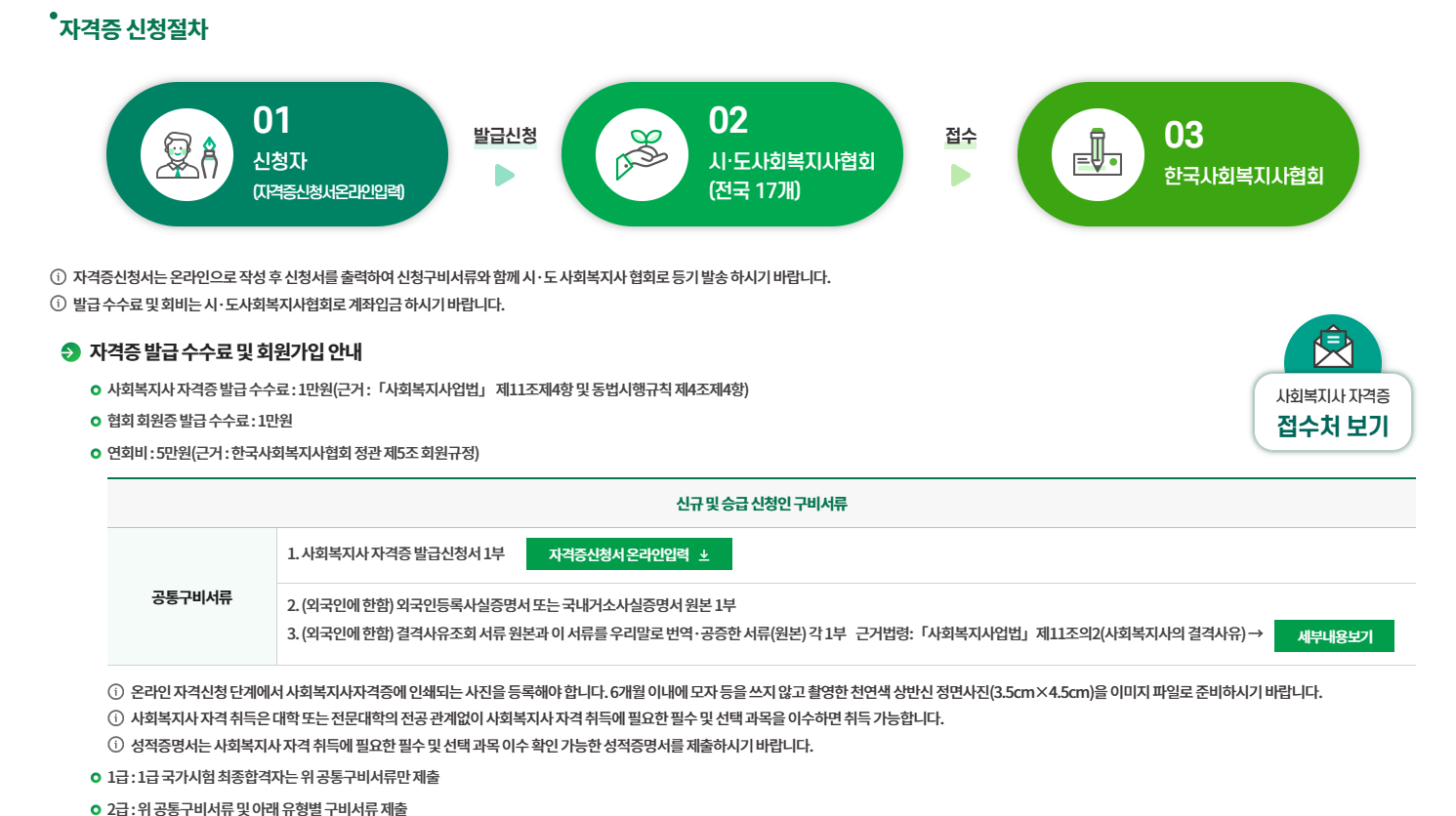 - 외국대학(4년제 이상) 졸업자(사회사업 또는 사회복지전공자) 위와 같음