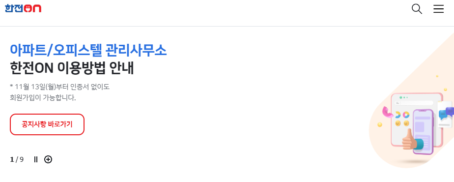 한국전력공사 사이버지점 홈페이지 바로가기│한전ON