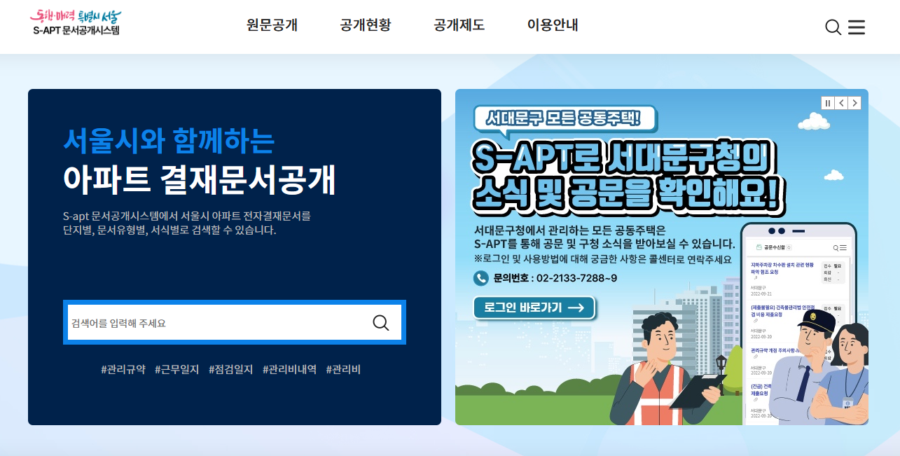 서울시 S-apt 문서공개시스템 바로가기 (seoul.go.kr)
