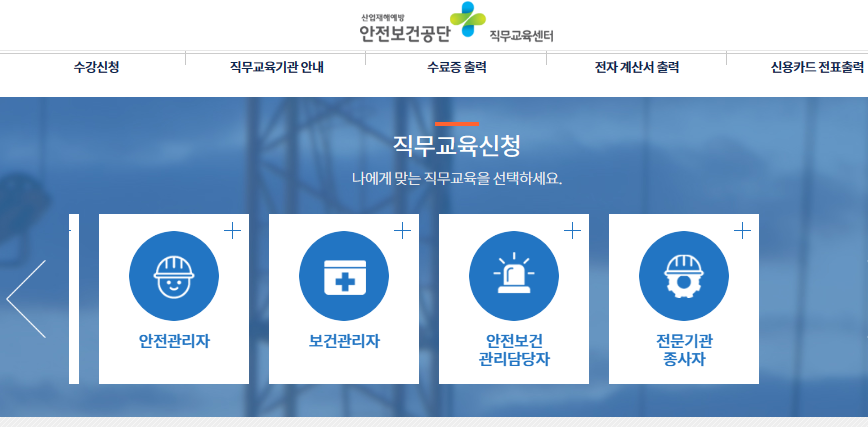 산업안전보건공단 직무교육센터 최초교육 보수교육(https://www.dutycenter.net/)