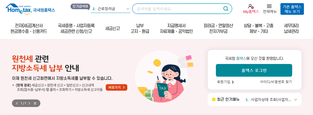 국세청 홈택스 홈페이지