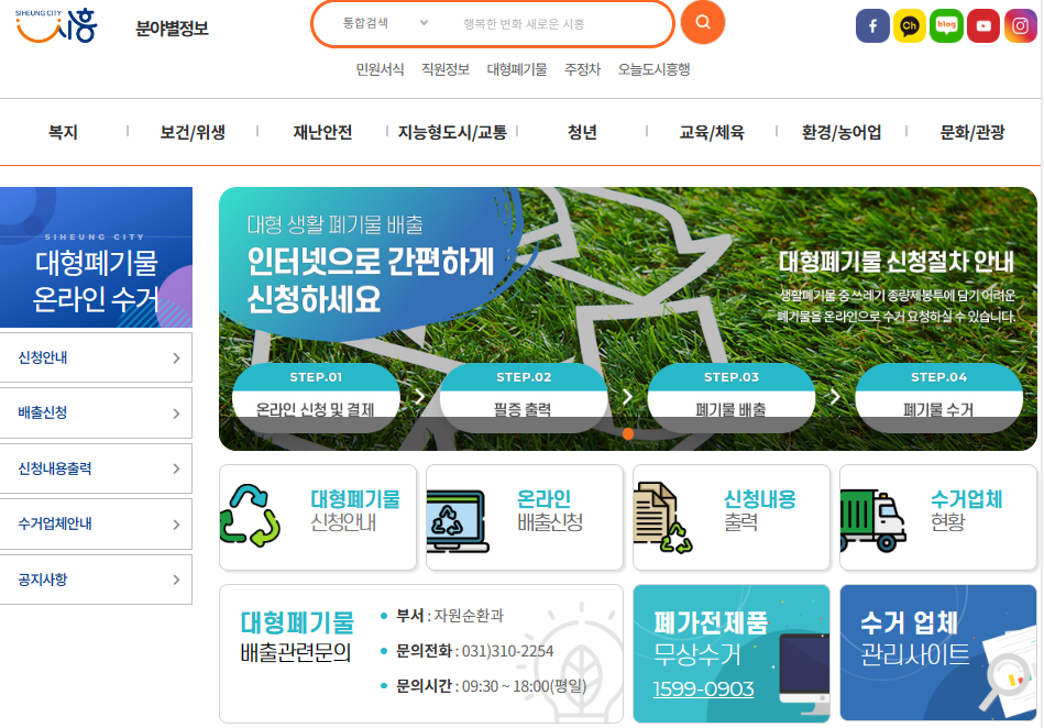 - 온라인으로 대형 생활 폐기물의 배출을 신청하고 결제할 수 있습니다.