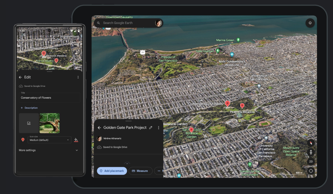- 3D 지구 보기: 사용자는 산, 계곡, 도시 등 지구의 다양한 지형을 3D로 볼 수 있습니다.