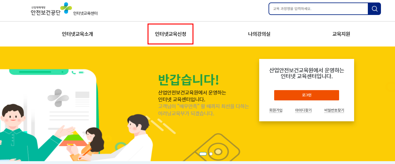 안전보건공단 인터넷교육센터 홈페이지에 접속하여 쉽게 교육 신청을 할 수 있습니다. 방법은 다음과 같습니다.