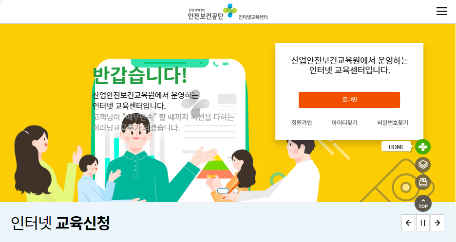 한국산업안전보건공단 인터넷교육센터 홈페이지