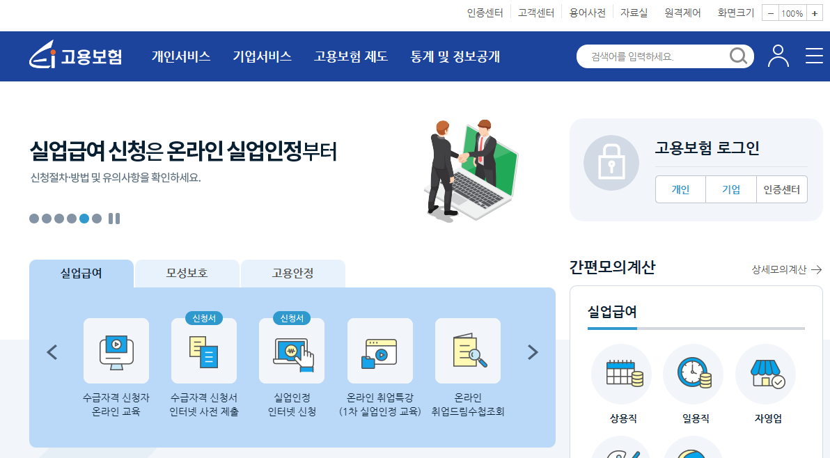 고용보험 배우자 출산휴가 신청 홈페이지