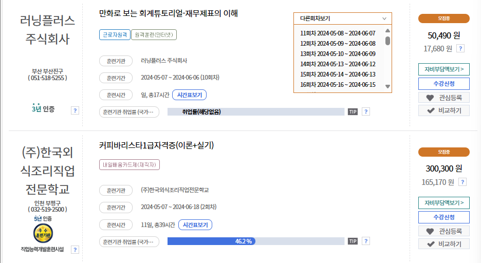 4. 국민내일배움카드 훈련과정 찾기 및 수강신청