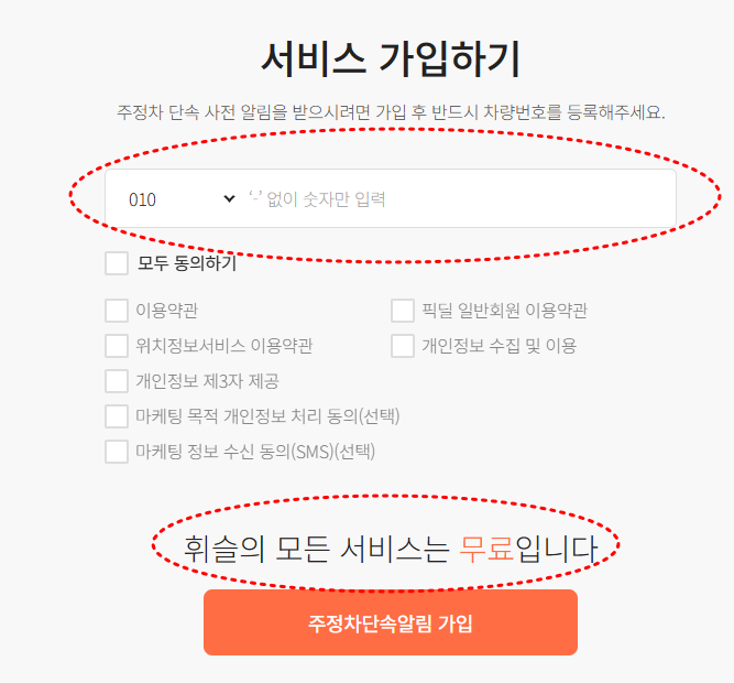 주정차단속 문자알림 서비스 휘슬 신청하기 https://www.010car.kr/