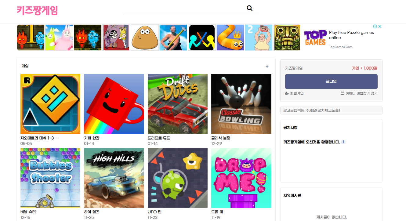 키즈짱게임 홈페이지