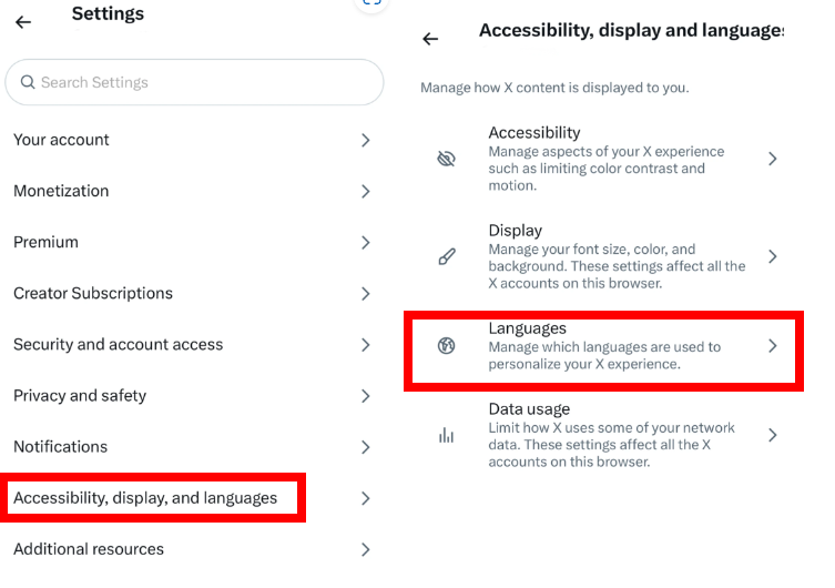 트위터 민감한 콘텐츠 설정 해제 및 언어 변경